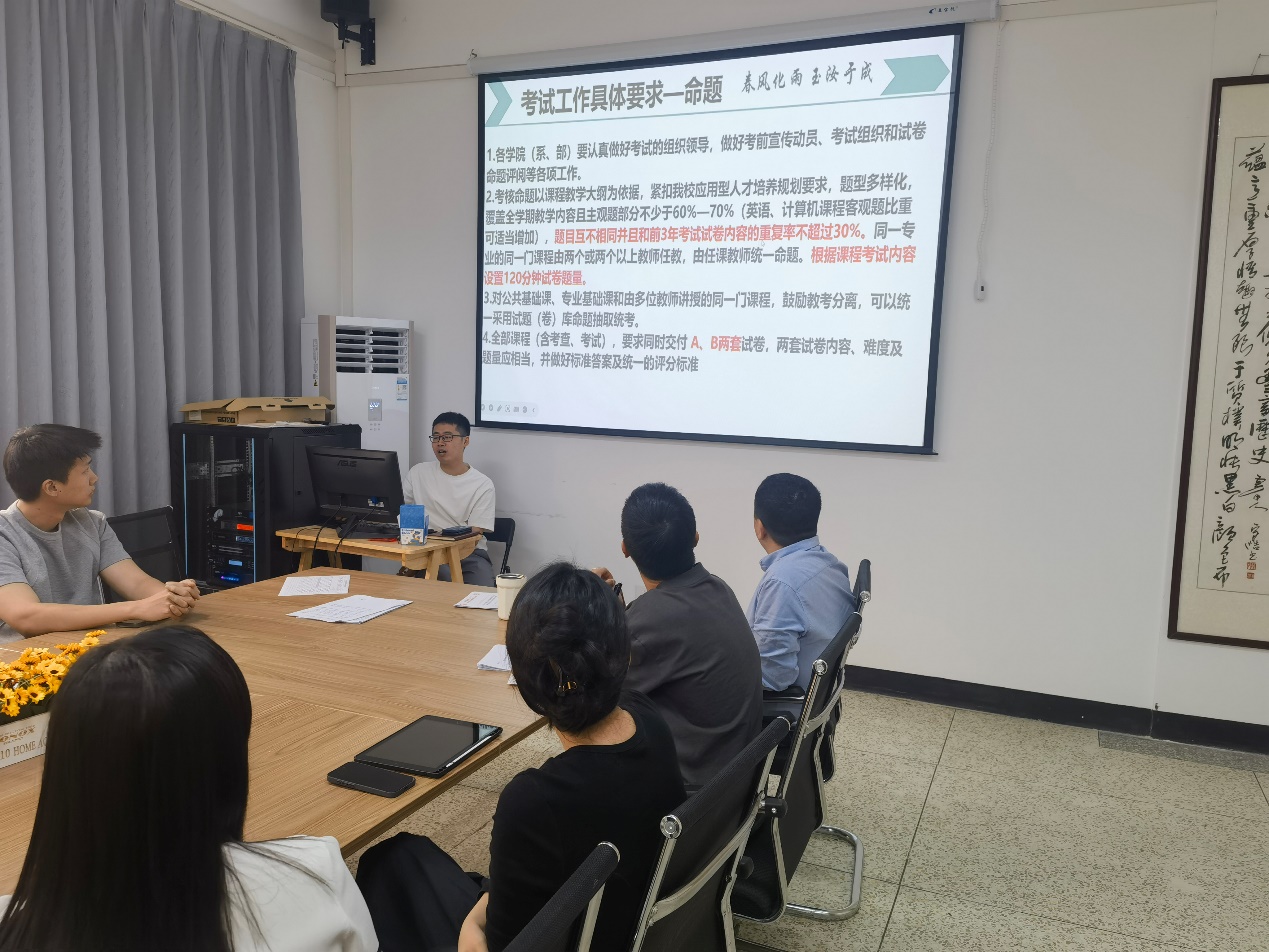 2025年5月28日上午,开云kaiyun官网在旧图205会议室召开期末教学工作会议。会议由张文院长主持,官毅教学秘书主讲,全院20余位教师参会。会议围绕教学规范、师德师风、考试命题及监考要求等重点工作展开部署,为期末教学收尾及质量保障明确方向。
