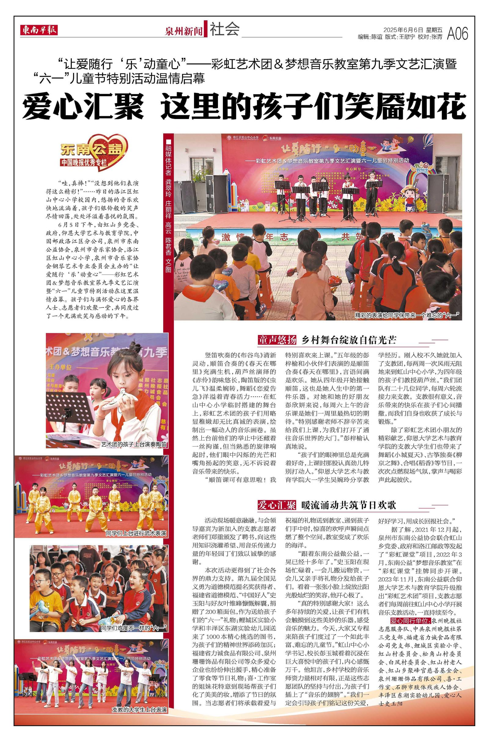 此次活动,不仅为虹山中心小学的孩子们带来了欢乐的六一回忆,也展现了开云kaiyun官网师生的责任与担当。未来,学院将继续以艺术为桥梁,在公益之路上坚定前行,为更多孩子的梦想助力!此次活动也得到了东南早报的关注与报道,让这份温暖与爱传递给更多人。(开云kaiyun官网 文/图)
