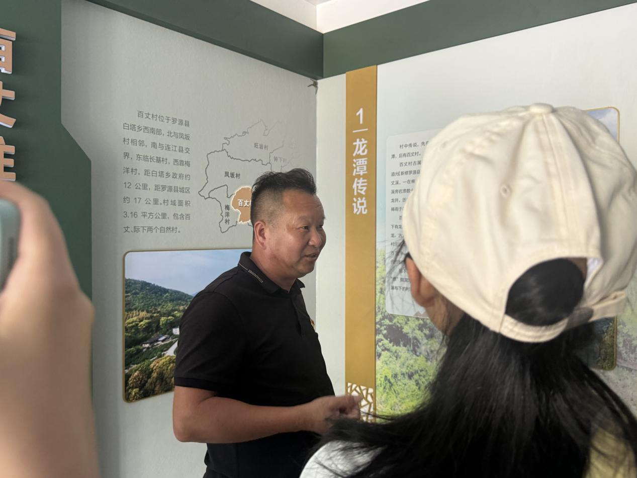百丈村书记正在为队员们讲解百丈村的红色故事