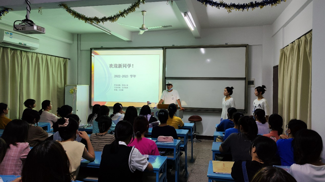 第三项由辅导员和班主任老师介绍本次班会流程,并依次自我介绍。辅导员阎磊与两位班主任翁佳仪、郭亭序老师均毕业于专业艺术高等院校的全日制硕士研究生,同学们因此提升了对于专业的期待。在老师们自我介绍之后由辅导员助理王婷以及三位班导魏峰、黄咏明、张乐祺进行自我介绍,并表达了对于学弟学妹们到来的欢迎。