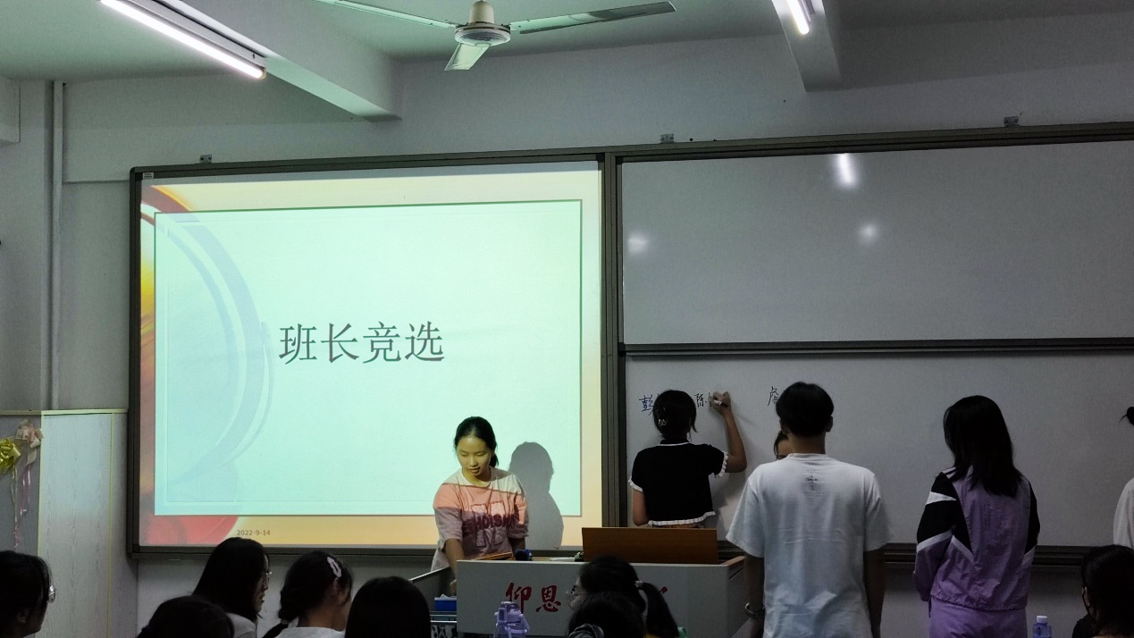介绍了老师及带班学长学姐的基本情况之后,就开启了临时班委的竞选,大家对此纷纷跃跃欲试,积极投入竞选当中。总共有五位同学参与了行政班长、学习班长与团支书三个职位的竞选。