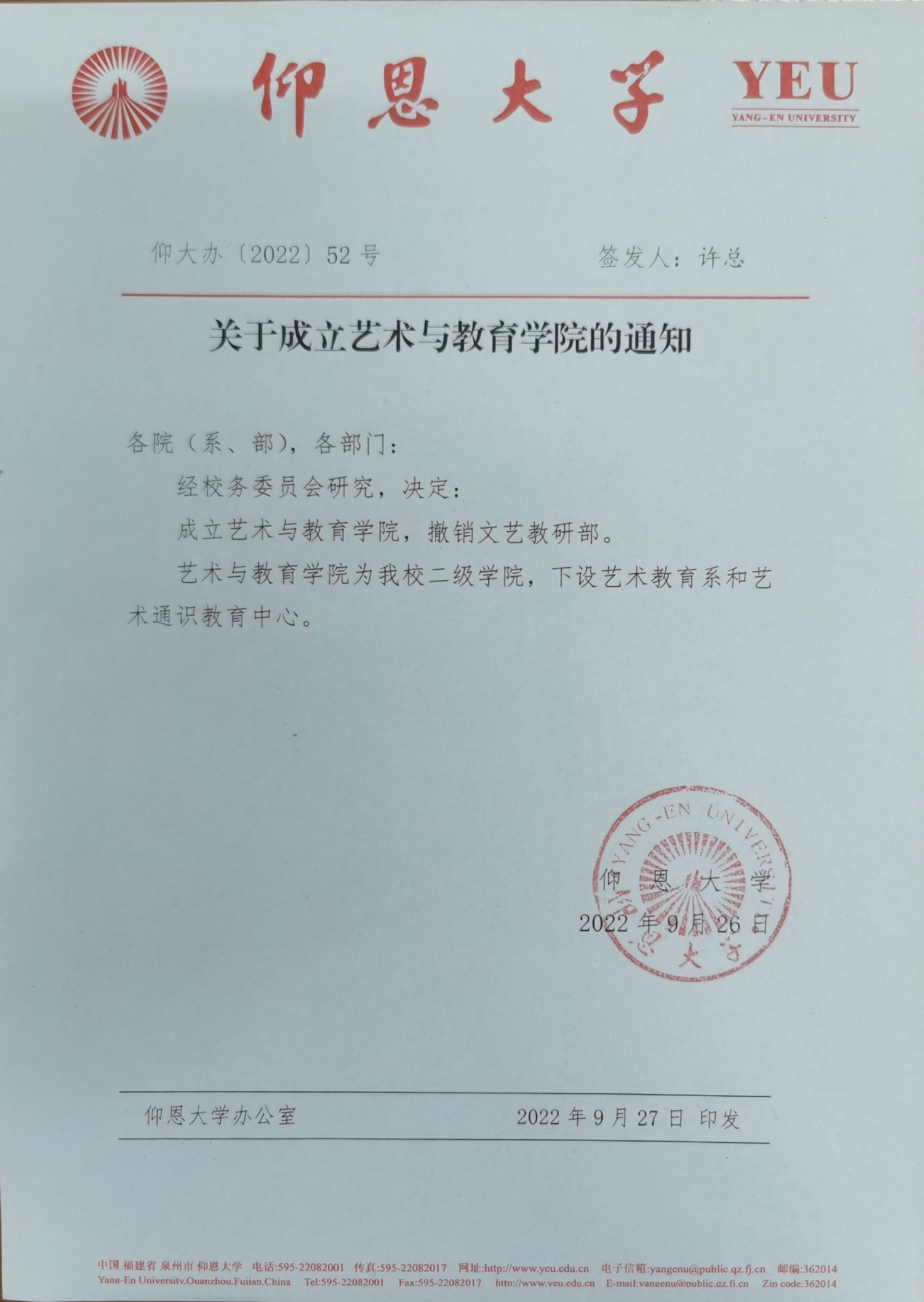 成立开云kaiyun官网,撤销文艺教研部。
