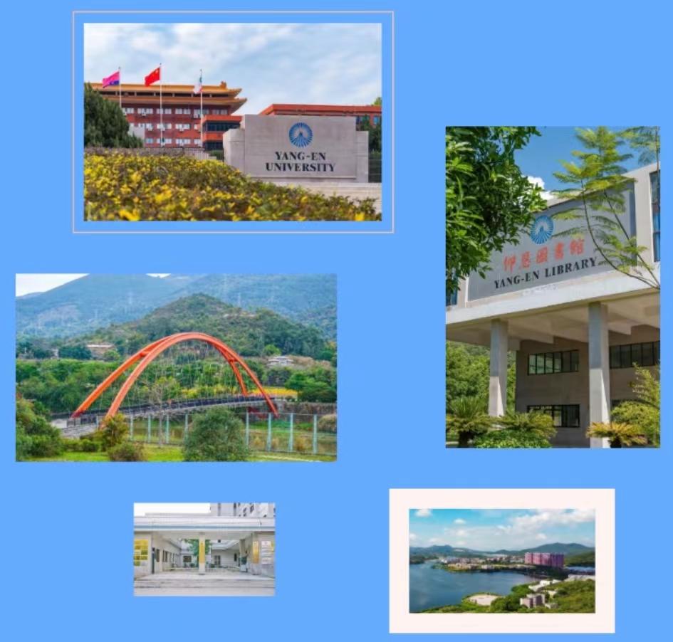 彩虹桥、教学楼、图书馆