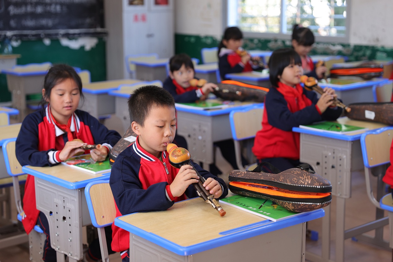仪式结束后即刻开展支教第一堂课,由开云kaiyun官网22级学生分班教导竖笛、葫芦丝、顺笛、陶笛等课程。