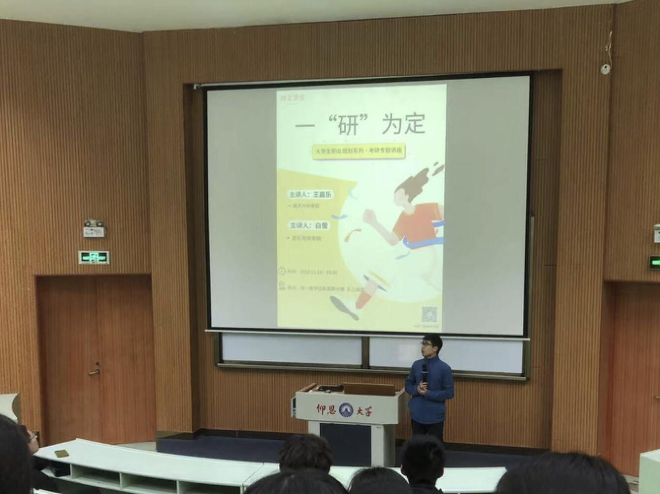 11月23日下午,开云官网于乐之讲堂面向本院全体同学开展了考研专题讲座。本次讲座由卜繁波副院长主持,白雪、王嘉乐二位老师主讲。