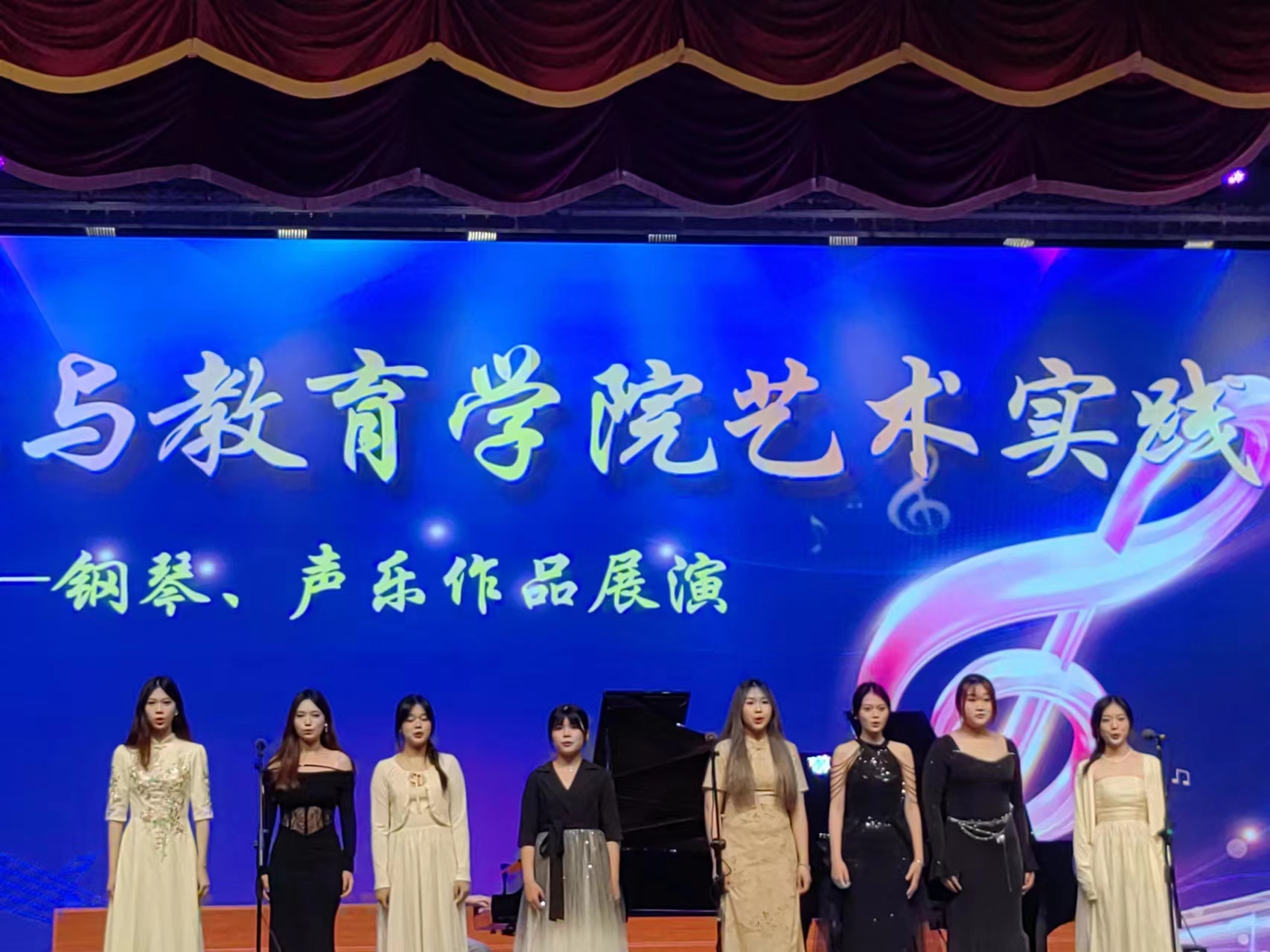 在本次艺术实践周中,美育、教改和思政教育贯穿始终。在美术作品展中,通过分设初步探索、稳步提升、渐入佳境三个板块,巧妙地呈现了同学们在美术成长道路上的轨迹。在学生说课展示中,同学们不仅将课堂搬上舞台,通过翻转课堂等形式,借助生动的教学课例深入诠释了音乐课堂的多元内涵,还展现了艺教学子扎实的教学基本功,更凸显了各自独特的课堂魅力。培养同学们的心理素质,让大家在实践中体现教学成果。而在艺术教育专业钢琴声乐作品展演中,无论是合唱、独唱,还是四手联弹、双钢琴演奏,各种表演形式轮番上阵,同学们以高水平的演出完美诠释了艺教学子的专业素养,令人目不暇接。本次展演还精选了如《黄河》、《梁祝》、革命歌曲和红歌等具有深刻思想内涵的音乐作品,主题鲜明、丰富多彩,激昂奋进的红色旋律、撼人心魄的气势汇聚强国建设、民族复兴的磅礴伟力,也表达了同学们对美好生活的向往和追求。充分体现了教改的成果,通过课程思政的角度,让学生在感受音乐之美的同时,更深刻地提升广大学子对中华民族传统文化的认同感,不断增强文化自信和自觉,厚植家国情怀,奏响礼赞新中国、奋进新时代的强音。