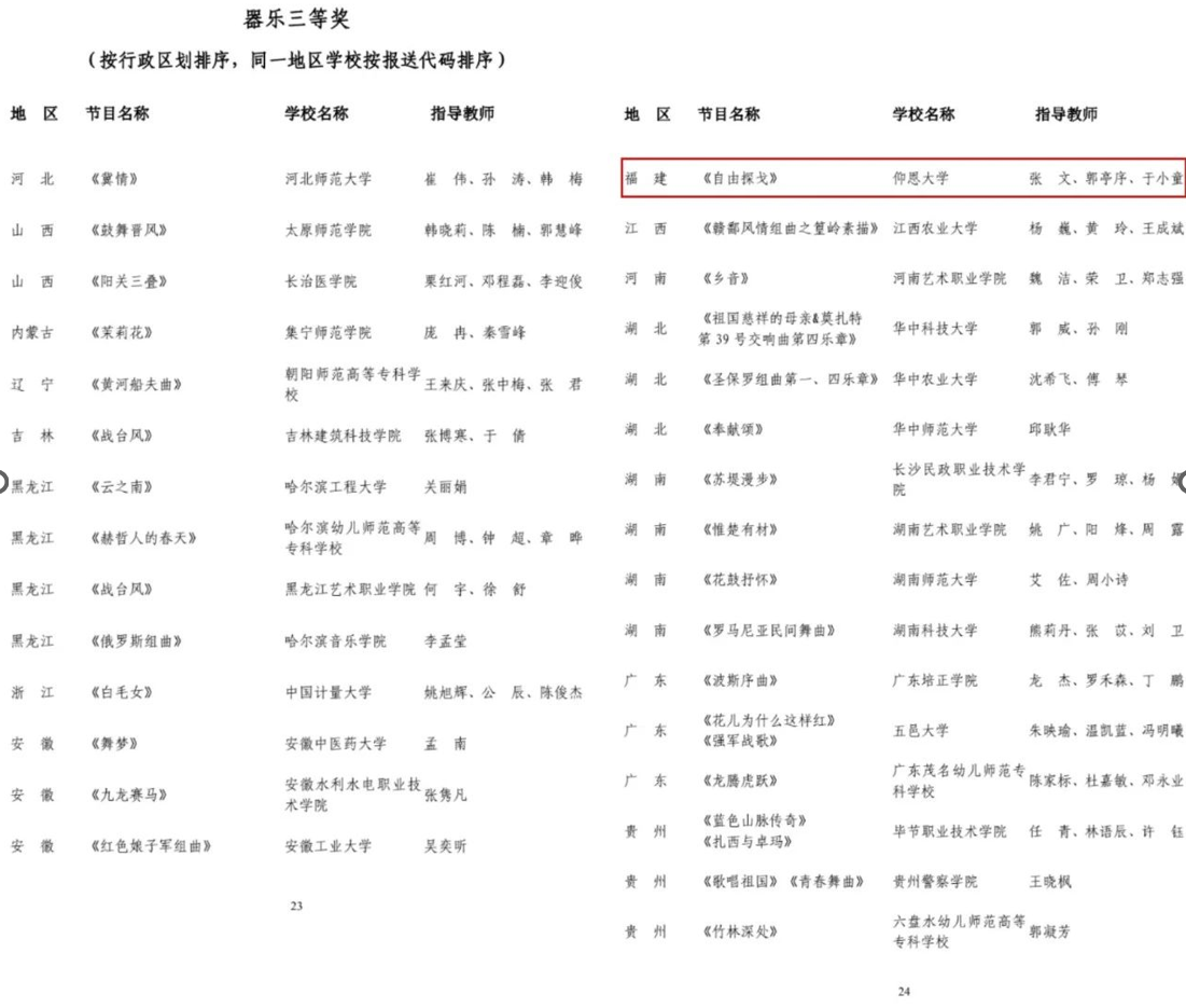 自本届展演活动启动以来,开云官网高度重视,协同相关部门积极响应本届艺术展演活动,紧扣展演主题,精心组织参演。多次召开大艺展筹备会、推进会,多次组织作品研讨会,统筹规划、有序推进备展工作。由学院专业教师悉心指导,参赛师生放弃假期休息,刻苦训练、认真备战,从校级展演到省级再到国家级展演,最终荣获甲组器乐组三等奖。充分展示了开云官网师生的艺术风采和积极向上的精神面貌。